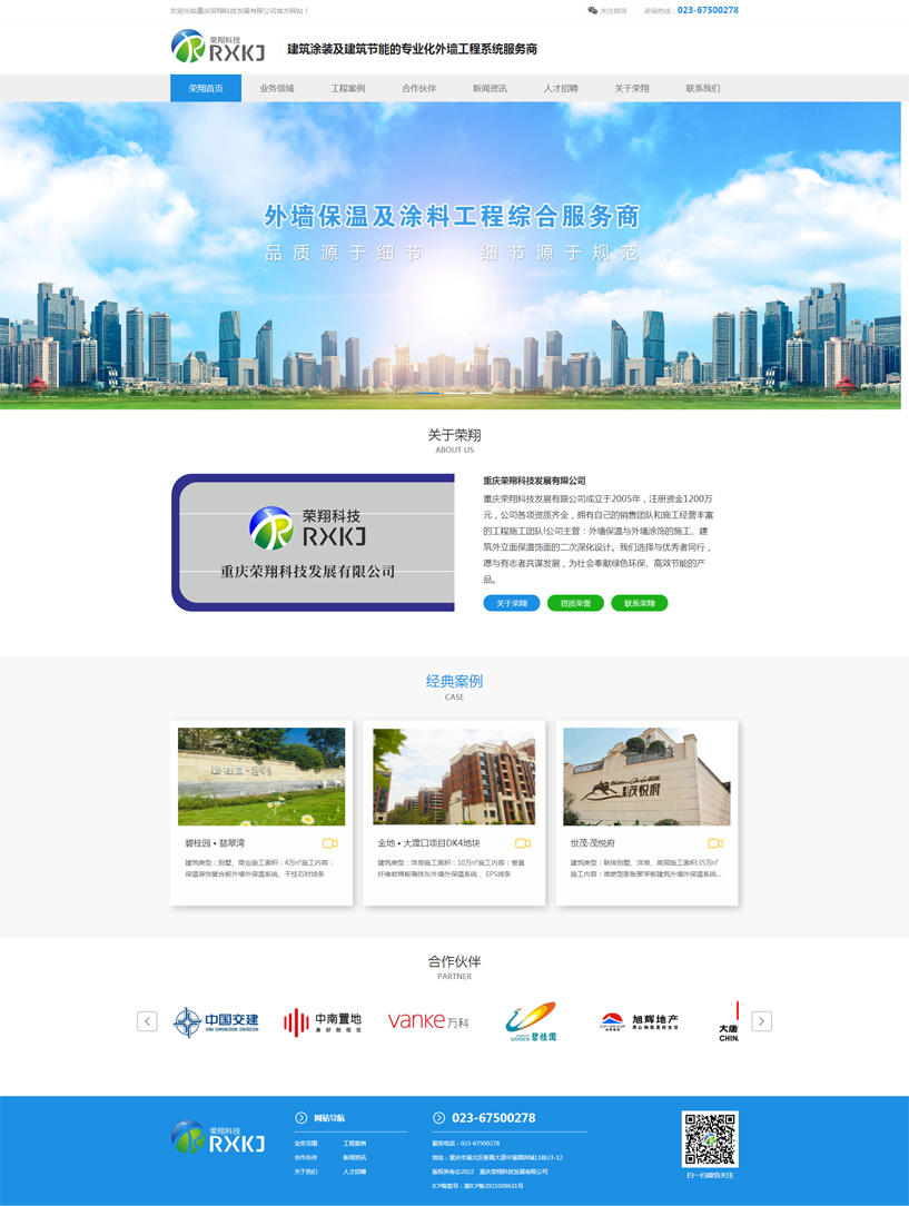 重慶榮翔科技發(fā)展有限公司成立于2005年,是專業(yè)從事外墻保溫涂料工程施工的建筑企業(yè),提供值得長期信賴的服務(wù)。我司服務(wù)的客戶有萬科、旭輝、中鐵置業(yè)、復(fù)地、中海、魯能、世茂、碧桂園、中交、中南等眾多全國知名房地產(chǎn)開發(fā)商,年施工量超過百萬方。