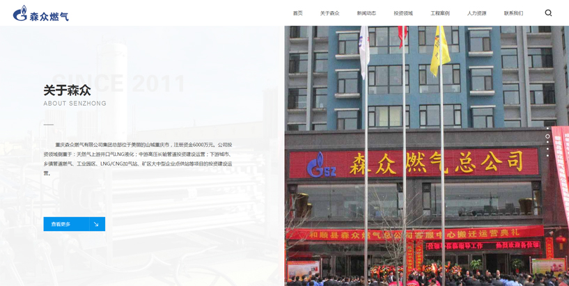 重慶森眾燃氣有限公司位于西部最大的城市,長江上游的經濟中心,美麗的山城——重慶,是一家集燃氣項目投資、燃氣工程設計、燃氣工程施工、城鎮燃氣經營為一體的天然氣綜合利用企業。公司前身武鄉縣森眾燃氣有限公司最早成立于2008年,經過近十多年的耕耘發展,于2015年成立重慶森眾燃氣有限公司,注冊資金6000萬元,總資產近10億元,作為總部運營平臺,對旗下投資、建設的多個省市城鎮管道天然氣項目實施運營管理,先后投資建設運營的項目有武鄉縣森眾燃氣有限公司、和順縣森眾燃氣有限公司、黎城縣森眾燃氣有限公司、沁源縣森眾燃氣有限公司、臨縣森眾燃氣有限公司、象州縣森眾燃氣有限公司、林口縣森眾燃氣有限公司、拜泉縣森眾燃氣有限公司,兼并重組永德縣普光天然氣有限公司、新平昆侖蓮花天然氣利用有限公司、怒江州紅日天然氣有限公司。重慶森眾燃氣有限公司投資領域主要集中在天然氣上游板塊的液化天然氣LNG的生產銷售;天然氣中游板塊的天然氣支線管道建設運營;天然氣下游板塊的城市、鄉鎮管道燃氣項目、工業園區天然氣綜合利用項目、工業園區生物質燃氣生產和集中供蒸汽項目、LNG/CNG加氣站、礦區及大中型企業LNG點供站等項目。