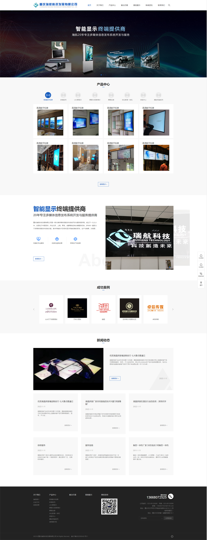 重慶瑞航科技發展有限公司是一家從事多媒體信息發布系統開發與服務提供商。成立于一九九六年,總部位于中國深圳,并在北京、上海、青島、成都等地設有辦事服務機構,多年來一直致力于多媒體信息發布系統方案、數字傳輸技術及相關顯示終端設備的研發、生產與銷售,為我國最早從事數字標牌開發商之一。服務過交通銀行、農業銀行、中國銀行、平安保險、長江證券等金融機構以及眾多商業連鎖企業、酒店、政府部門等,并獲得他們一致肯定和好評。
