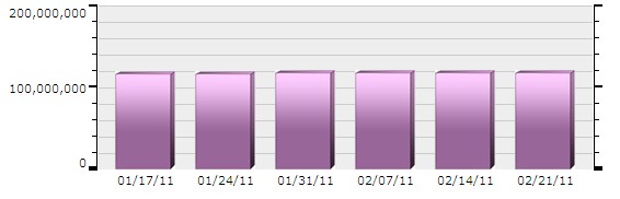 從圖2最新數據所示,2月上旬,全球域名凈增量呈現平穩增長,域名總量從120789514個上升至121509467個,域名損失量大大小于域名注冊量,每周期的域名凈增長數目更是維持在300000以上。由此可見,在2011新年初始,全球域名注冊量呈現平穩式增長,相對于2010年的增勢下降,新年初始的全球域名市場前景更為樂觀。