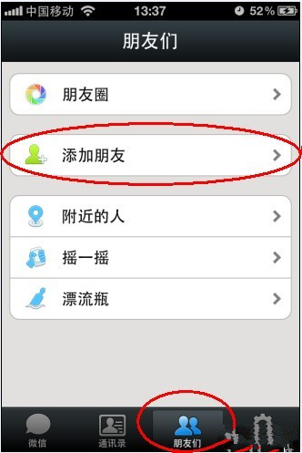 1、打開微信,找到“朋友們”——添加朋友