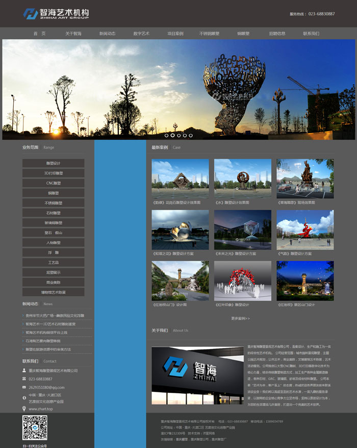 重慶智海雕塑景觀藝術有限公司,是集設計、生產和施工為一體的綜合性藝術機構。 公司經營范圍:城市園林景觀雕塑,主題公園藝術規劃,公共藝術,商業美陳,文博展館藝術陳展,藝術活動策劃。公司獨創以大型CNC雕刻、3D打印等數字化技術為核心力量,結合傳統雕塑制造方式,加工生產各種金屬鍛造鑄造,各種石材、GRC、玻璃鋼、砂巖及綜合材料雕塑。 公司本著“藝術為本,客戶至上”的態度,熱誠歡迎各界朋友前來聯系洽談業務!我們將以高超至圣的藝術水準,一言九鼎的服務承諾,以獨特的企業核心競爭力立足市場,堅持以原創設計為本,為您的生活增添幾許美麗,打造出一個完美的藝術世界。